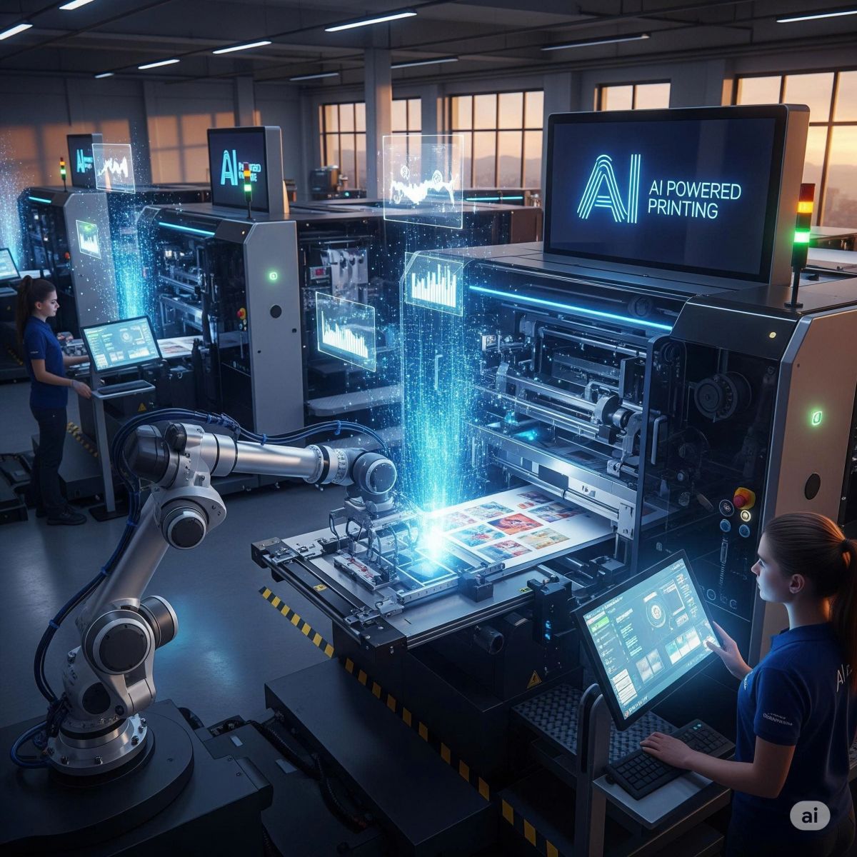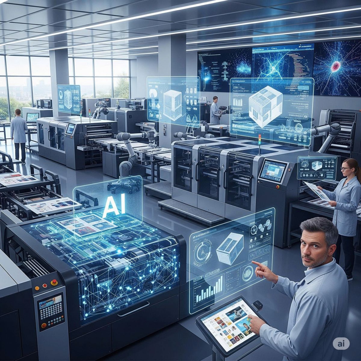 - AI còn giúp tối ưu hóa quy trình vận hành máy in, giảm lãng phí vật tư và thời gian chết của máy.
